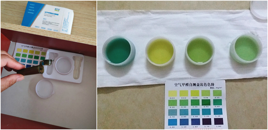 檢測家具內(nèi)甲醛,查找甲醛污染源,推薦用甲醛自測盒,而不是電子類甲醛檢測儀。甲醛自測盒采用國家標準的甲醛檢測方法,利用甲醛易溶于水的原理,自然吸收空氣中的甲醛,檢測結(jié)果穩(wěn)定可靠。