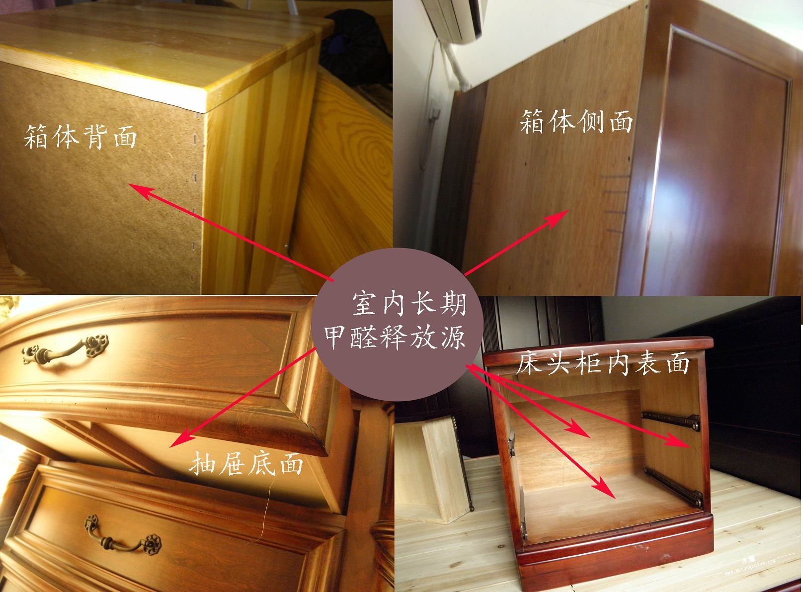 同樣的道理這些地方我們也要多留意一下:如多屜柜、床頭柜、衣柜內(nèi)部、茶幾、電視柜等的抽屜,特別是這些抽屜的背面、底面、以及拔出抽屜后的箱體內(nèi)側(cè),還有床箱,衣柜內(nèi)部,或各種家具的背面靠墻一側(cè)等等。因為這些是家具廠商可以降低成本的地方,不太容易看到的地方,恰恰是甲醛長期污染源的藏身之所。