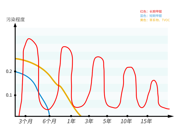 甲醛釋放持續(xù)且起伏較大,不同時間、環(huán)境條件下污染程度不同