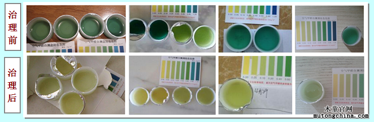 我們來看一些消費者自己實施甲醛治理時,在使用木童強力除醛劑治理前,以及治理后,自己檢測室內(nèi)空氣,以及家具內(nèi)甲醛濃度的照片。