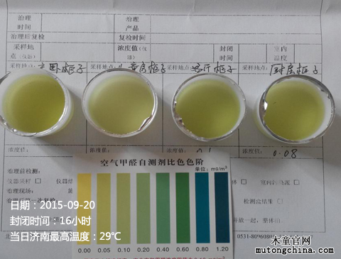 這是2015年濟(jì)南市郵電新村客戶的案例,左側(cè)為甲醛治理前,消費者自己拍攝的不同家具內(nèi)的檢測結(jié)果,右側(cè)為治理后相同家具內(nèi)的檢測結(jié)果,治理后的照片是在濟(jì)南木童環(huán)??萍加邢薰締T工協(xié)助下拍攝的。