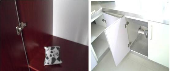 李女士主臥的衣柜基材為木紋紙飾面的密度板,外層又涂刷了油漆,從光澤度、手感等方面很容易認(rèn)為是實(shí)木的油漆家具。使用這類家具的消費(fèi)者要注意兩點(diǎn),首先是個(gè)別的木紋紙黏貼不完整會出現(xiàn)翹邊、空鼓(小包);其次是一般木紋紙飾面后再涂刷油漆的遍數(shù)會少,無法有效封擋于甲醛的揮發(fā),并且會遇水掉色或起泡的現(xiàn)象。這類家具治理木童治理工程師首先使用木童除醛二號三代進(jìn)行處理甲醛污染,然后再使用木童家具除味劑處理表層的油漆污染和氣味;尤其是家具內(nèi)部涂刷油漆很少或未刷油漆的地方。還要重點(diǎn)對家具的裸露的密度板背板使用木童除醛二號三代進(jìn)行治理,另外為了有效清