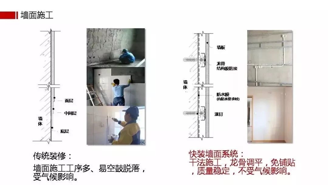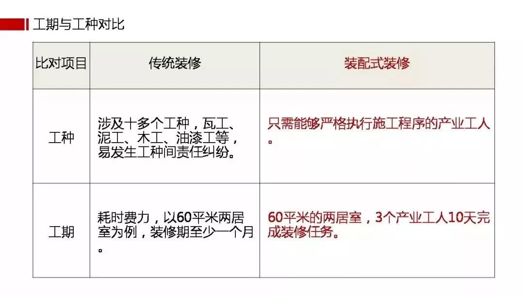 下面小編通過(guò)圖示說(shuō)明裝配式裝修與傳統(tǒng)裝修的對(duì)比優(yōu)勢(shì):