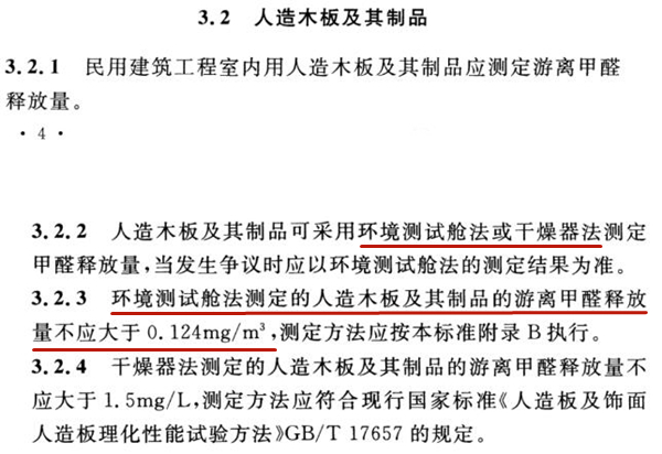 對室內(nèi)裝飾裝修設(shè)計(jì)提出了污染控制預(yù)評估要求及材料選用具體要求,為室內(nèi)污染治理企業(yè)開展事前治理提供了新的方向。以人造板為例,規(guī)定其甲醛釋放量不應(yīng)大于0.124㎎/m³,材料甲醛釋放量檢測采用人造板甲醛釋放量測定的環(huán)境測試艙法和干燥器法。