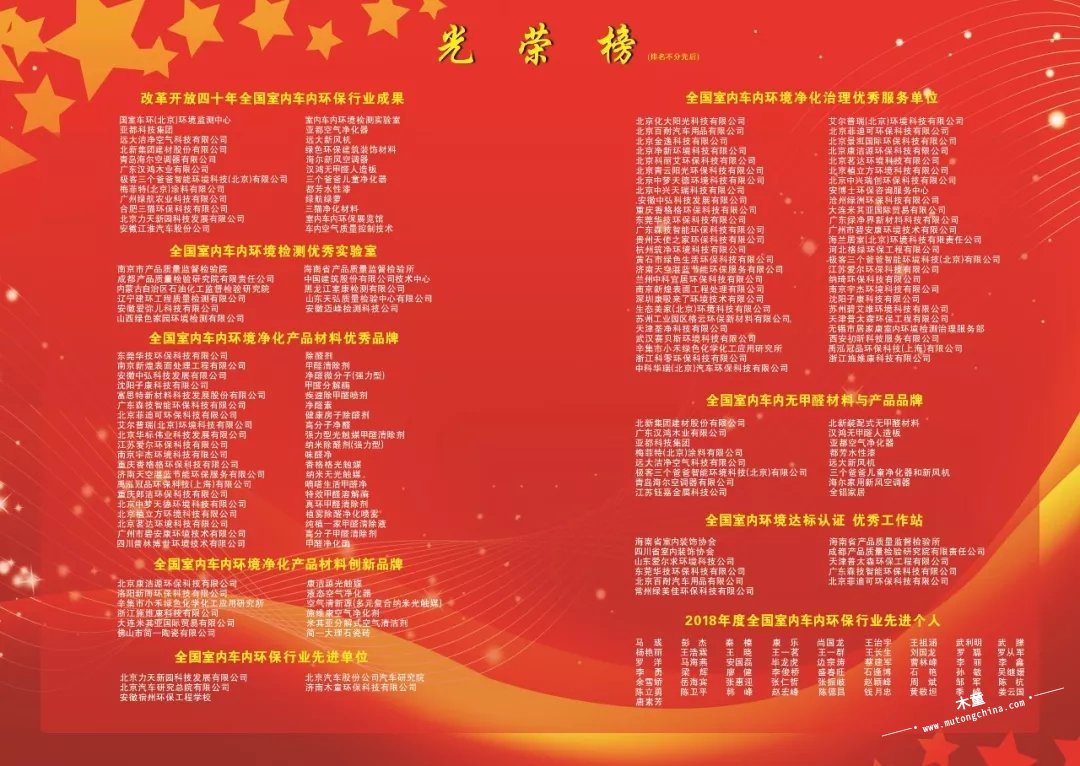 會(huì)上還發(fā)布了改革開放四十年全國室內(nèi)車內(nèi)環(huán)保行業(yè)的創(chuàng)新成果和凈化治理產(chǎn)品優(yōu)秀品牌、優(yōu)秀實(shí)驗(yàn)室、優(yōu)秀凈化服務(wù)單位、無甲醛產(chǎn)品推廣品牌和優(yōu)秀個(gè)人。