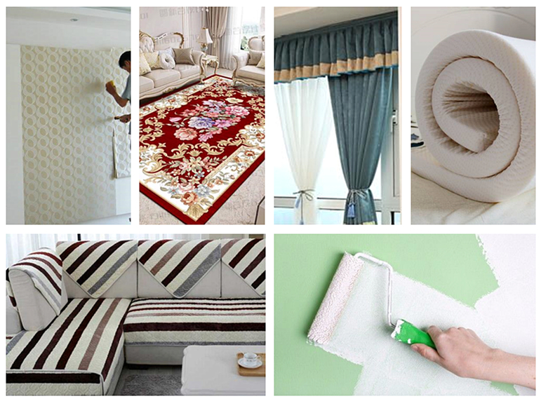 裝飾裝修材料和一些家居物品,如墻漆、壁紙、窗簾、布藝沙發(fā)、填縫或封邊用膠黏劑等,大多會釋放甲醛和VOC污染。這些污染源的特點是污染較輕、釋放期較短,夏季2周到2個月基本釋放完畢,最長不超過半年。
