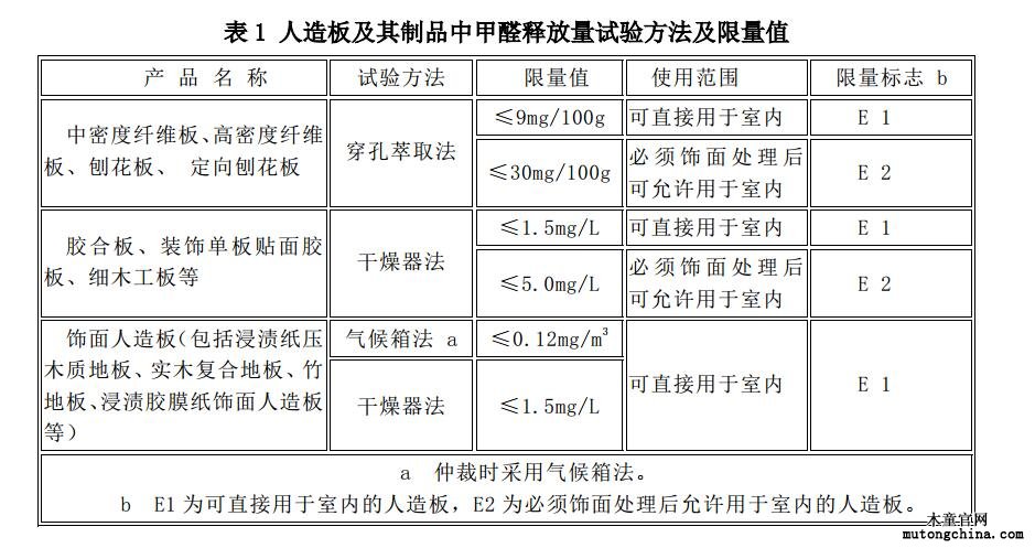 歐洲標準BS EN 13986:2004《建筑用人造板性能、合格評定和標志》只對E1級、E2級人造板產(chǎn)品中甲醛釋放量檢測有具體指標和方法。E1級標準為≤8mg/100g;E2級標準為≤30mg/100g。
