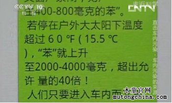 如上圖所示,網(wǎng)上流傳:當車停在戶外大太陽下,溫度超過15.5℃時,苯上升至2000-4000毫升,超出允許量的40倍。