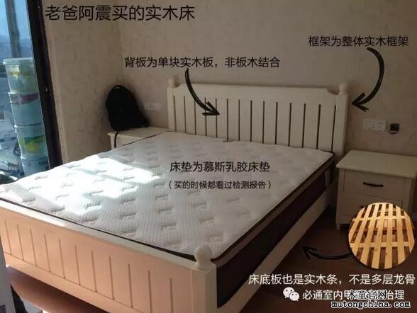 甲醛含量:純實木<板木結(jié)合、 純實木床板<多層龍骨床板。