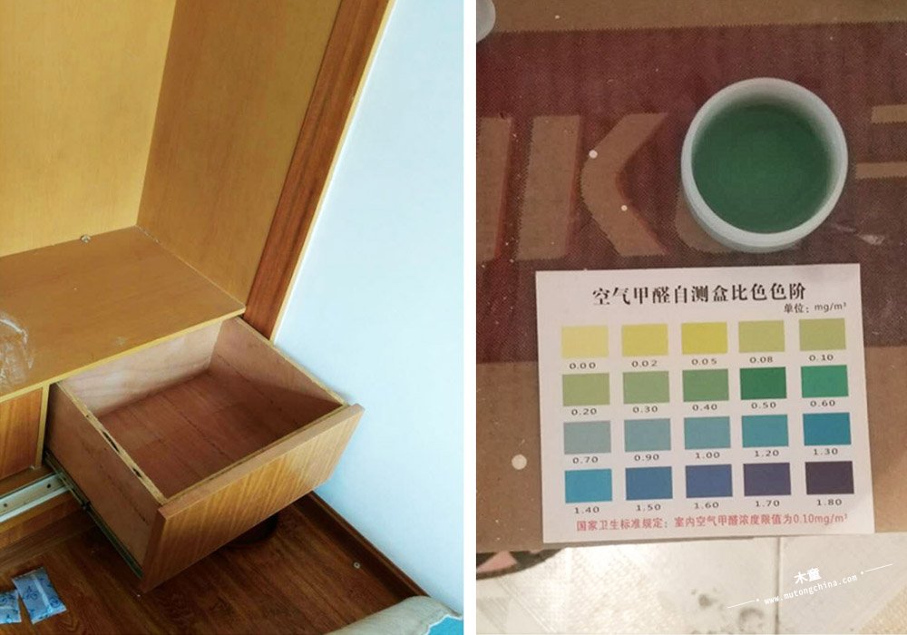 濟南業(yè)主楊女士為了孩子上學(xué)買了學(xué)區(qū)房,因為是二手房,之前房主裝修時制作的家具雖然已經(jīng)7、8年了,但都基本完好,可以使用,加之又不常住,也就沒有拆除,只是新添置了沙發(fā)、茶幾等小件家具。因為帶孩子偶爾也會住幾天,楊女士從天貓木童旗艦店購買了甲醛自測盒,又咨詢了客服,在客服的指導(dǎo)下,不僅測了室內(nèi)空氣中的甲醛,還測了每件家具內(nèi)的甲醛。