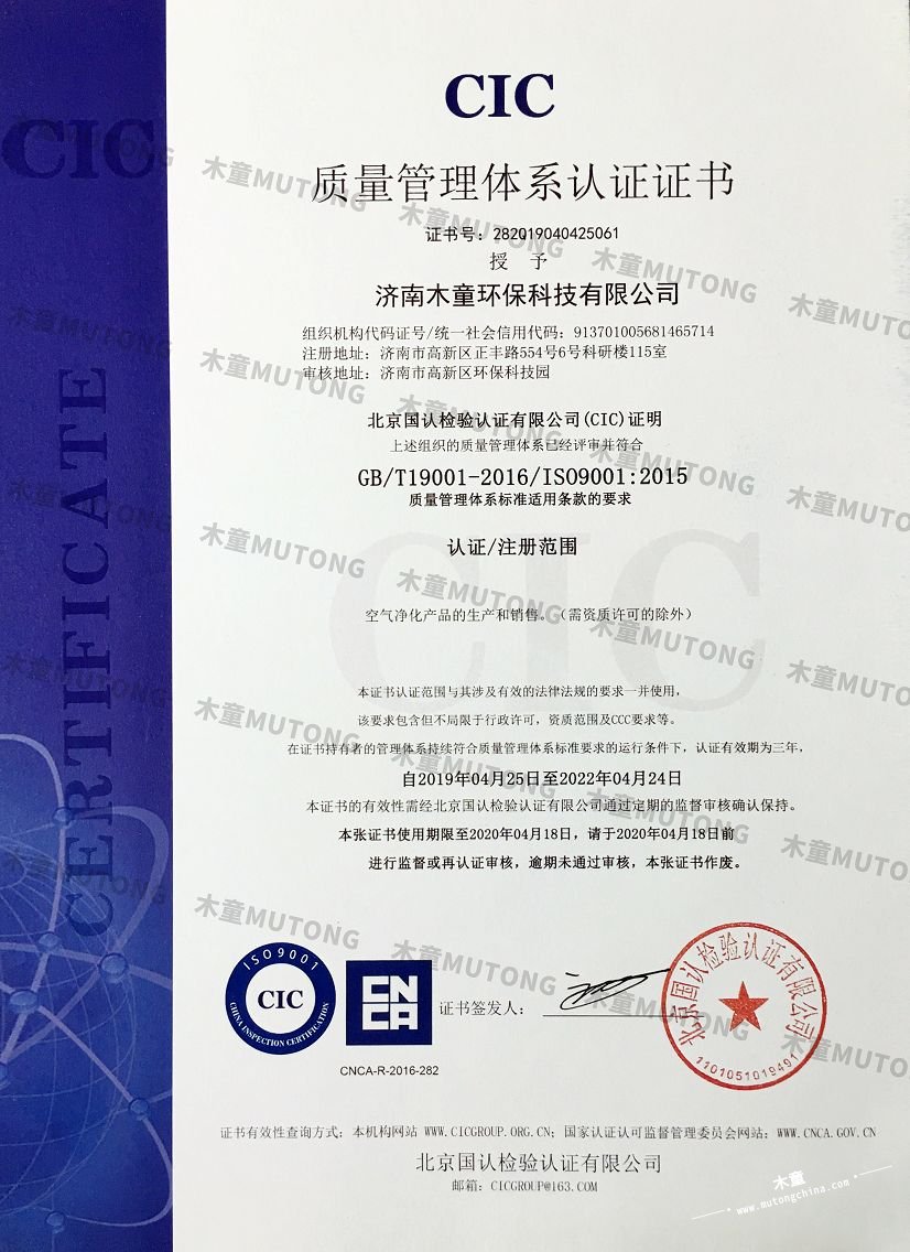 木童榮獲2019年ISO9001質(zhì)量管理體系認(rèn)證