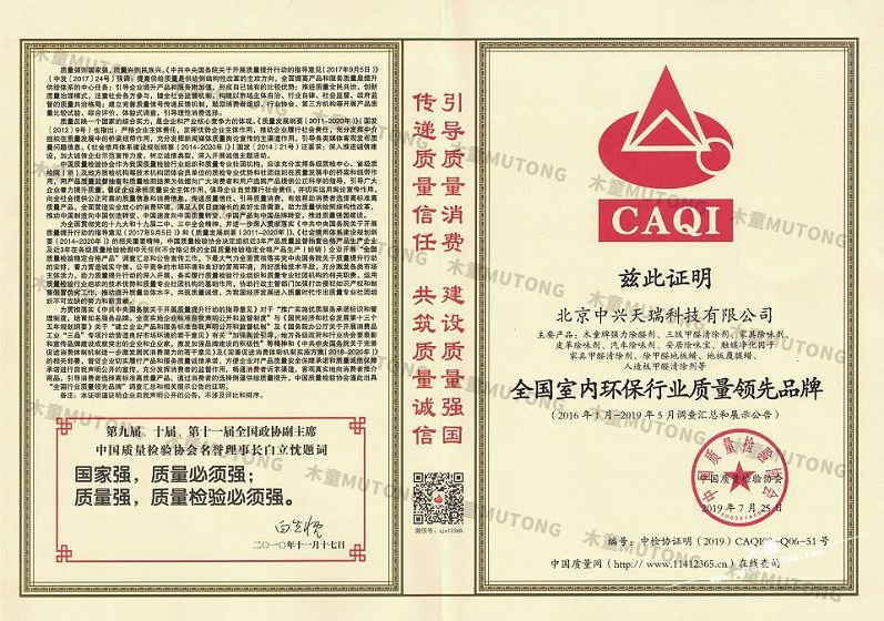 木童榮獲2019年全國室內(nèi)環(huán)保行業(yè)質(zhì)量領(lǐng)先品牌